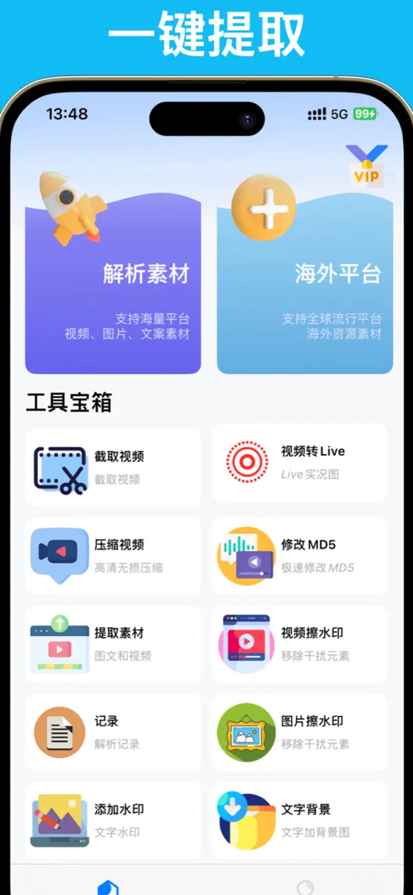 应用介绍 用户过万,编辑视频水印、图片水印。添加水印、压缩视频、提取素材、解析视频等功能,修改视频md5,擦除视频内的物体,擦除图片中的物体,让图片更简洁更优雅。 解锁功能 商店付费游戏砸壳 无广告和内购 截图预览 ❮ ❯