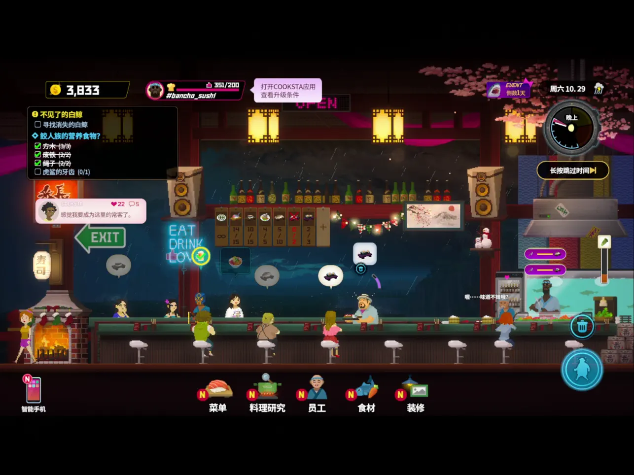潜水员戴夫 是一款融合冒险探索与模拟经营的休闲角色扮演游戏,玩家将于白天下潜神秘而绚丽的海底世界,捕捞鱼类、收集资源、揭开深海谜团;夜晚则化身寿司店经营者,用亲手捕获的新鲜食材招待食客、积累口碑与资金。游戏以细腻的像素画风构建出充满生命力的蓝洞生态,结合装备升级、强敌对抗与剧情推进,并穿插多种轻松有趣的小游戏,为玩家带来节奏张弛有度、内容丰富多元的海洋冒险体验。